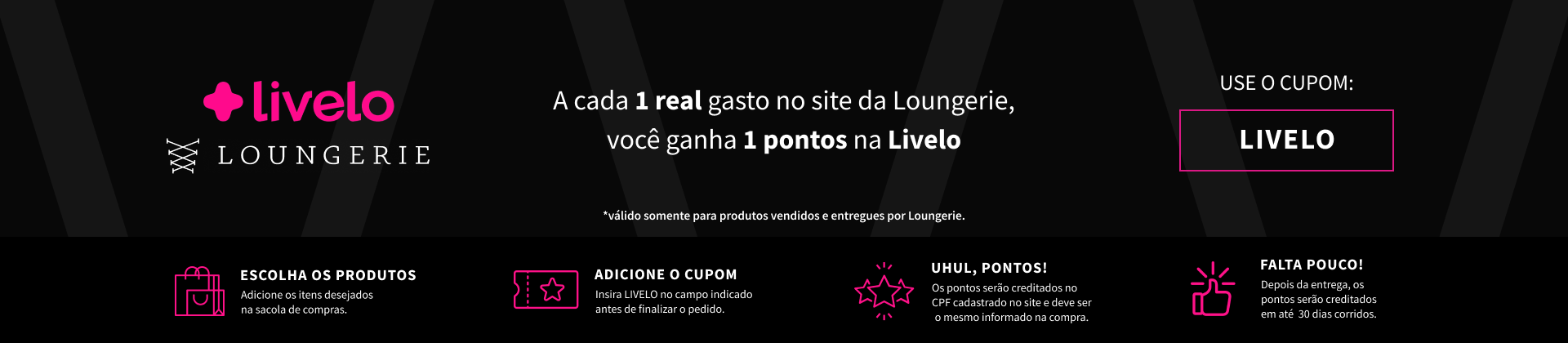 As pessoas físicas, maiores de dezoito anos, que: (i) Comprarem produtos vendidos e entregues pela LOUNGERIE através do link https://www.loungerie.com.br/livelo, com a utilização do cupom LIVELO no campo “Cupom de Desconto” disponível no carinho de compras; (ii) sejam titulares do CPF informado durante o processo de ...Ler mais